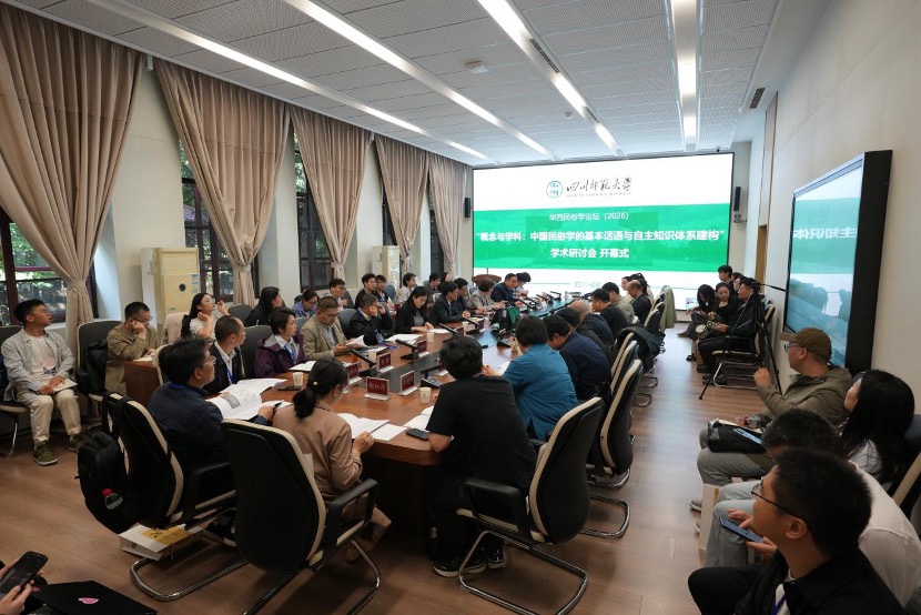 春风润天府,学术汇蓉城。2026年4月18日上午,华西民俗学论坛(2026)“概念与学科:中国民俗学的基本话语与自主知识体系建构”在四川师范大学开幕。本次论坛由中国民俗学会指导,四川师范大学文学院、山东大学儒学高等研究院民俗学研究所联合主办,四川省民间文艺家协会、成都市民俗文化研究会、巴蜀文化与教育研究中心协办。全国四十余位民俗学及相关领域专家学者齐聚一堂,共商学科发展大计,共探理论创新之路。